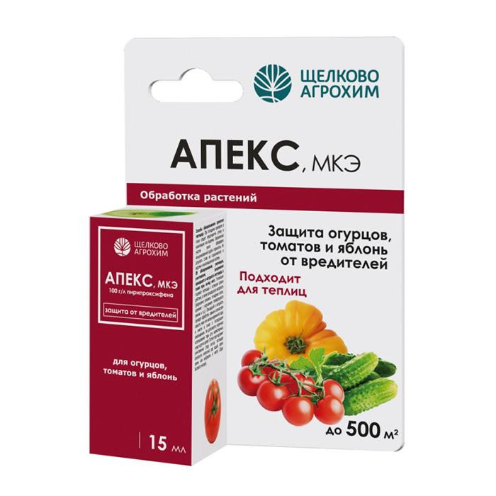 Сезонность апрель-август.Препарат «Апекс, МКЭ» на основе пирипроксифена обладает контактно-кишечным действием и влияет на физиологические процессы насекомых. Проникая в организм вредителя, активное вещество препарата нарушает гормональный баланс, вызывает стимуляцию роста личинки, не позволяя перейти ей в стадию образования взрослой особи, что приводит к ее гибели. Взрослые особи, которые подвергаются воздействию инсектицида, не способны отложить жизнеспособные яйца и становятся бесплодными. «Апекс, МКЭ» малотоксичен для полезных насекомых, экономичен в применении, уничтожает тепличную белокрылку, калифорнийскую щитовку, яблонную плодожорку др. вредителей. Препарат безопасен при применении на тепличных культурах и его можно использовать на ранних стадиях развития растений.Максимально эффективная масляная формуляция в отличие от традиционных аналогов.
