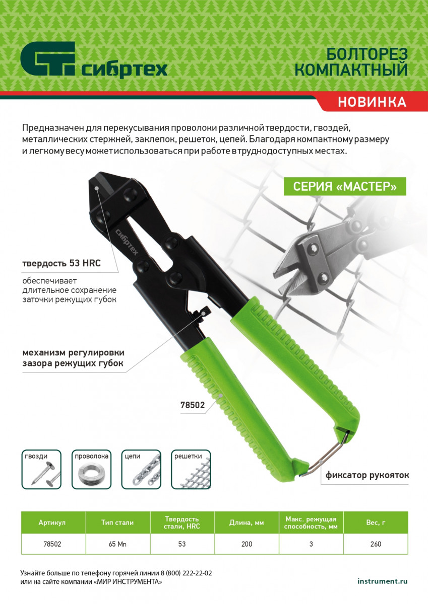 Болторез компактный, 200 мм - 8", 65Mn Сибртех