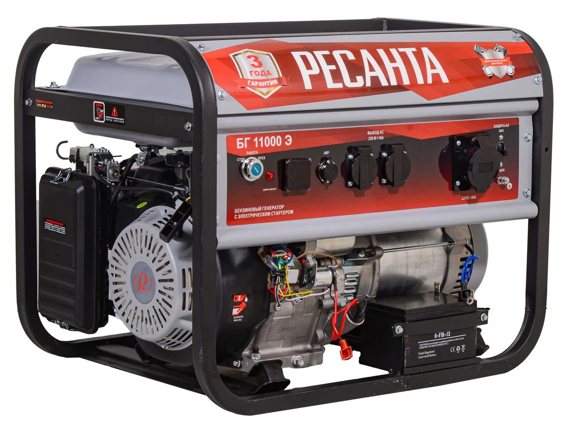 Бензиновый генератор Ресанта БГ 11000 Э – мощное и надежное устройство, способное обеспечить питанием в отсутствие электроснабжения строительную технику и частные домовладения. Повышенный ресурс работы двигателя и действующая система защиты от различных негативных факторов позволяет получить уверенность в длительном сроке эксплуатации.