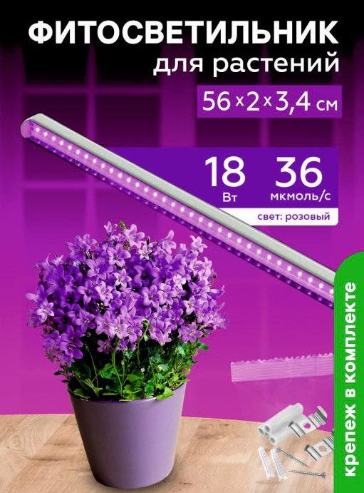 Фитосветильник свет 18 Вт для растений спектр для фотосинтеза 572 мм Урожайная сотка с выкл розовый