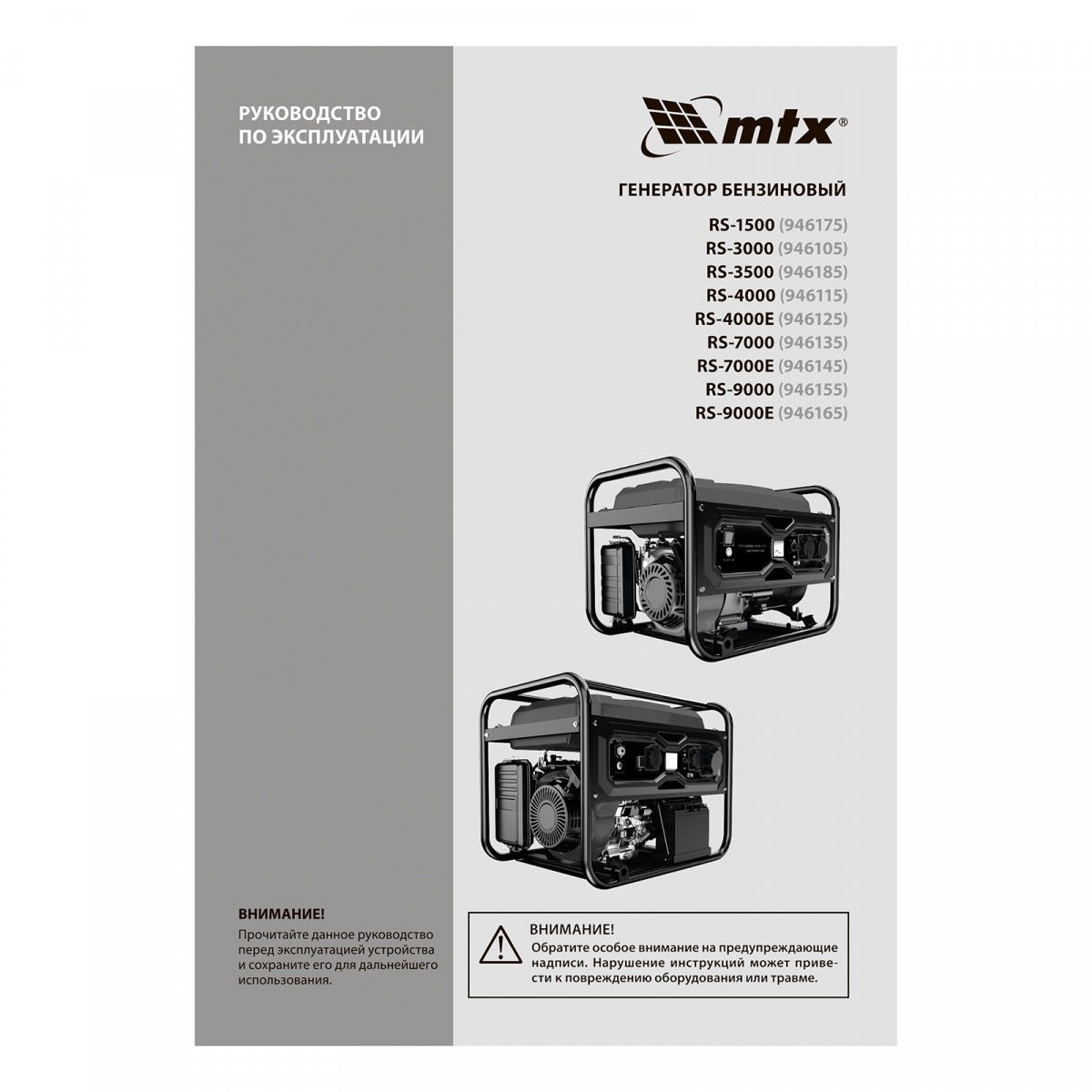 Генератор бензиновый RS-1500, 1,1 кВт, 230В, ручной стартер MTX