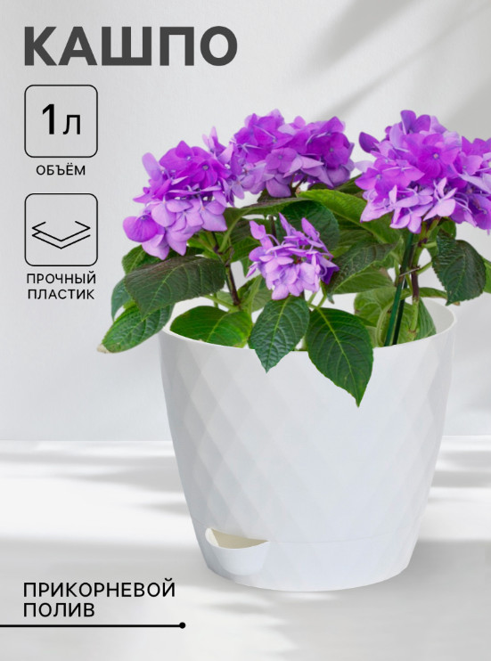 Горшок для цветов с прикорневым поливом Румба 1 л белый
