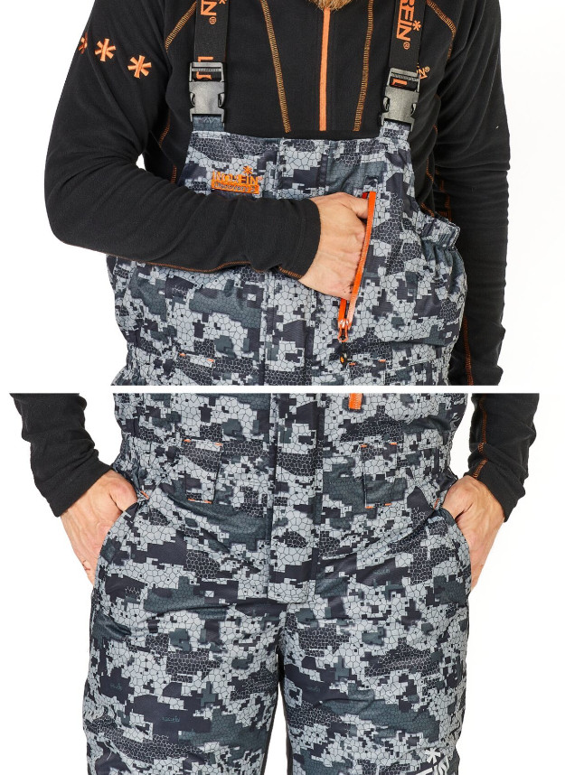 Костюм зимный, рыболовный, куртка и полукомбинезон из мембраны NORTEX BREATHABLE, водонепроницаемость 8000 мм, дышащая способность материала 6000г на кв.м за 24 ч, утеплитель HOLLOFIL. Рекомендованная температура до -35 град.С