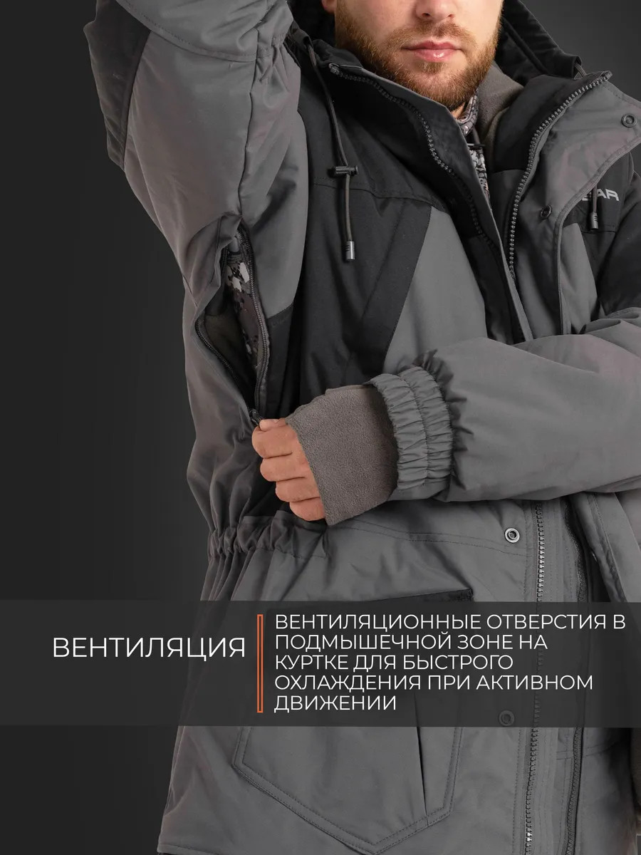 Зимний костюм STRONG -40 изготовлен из прочного материала Таслан, обеспечивающего защиту от холода и влаги в экстремальных условиях.