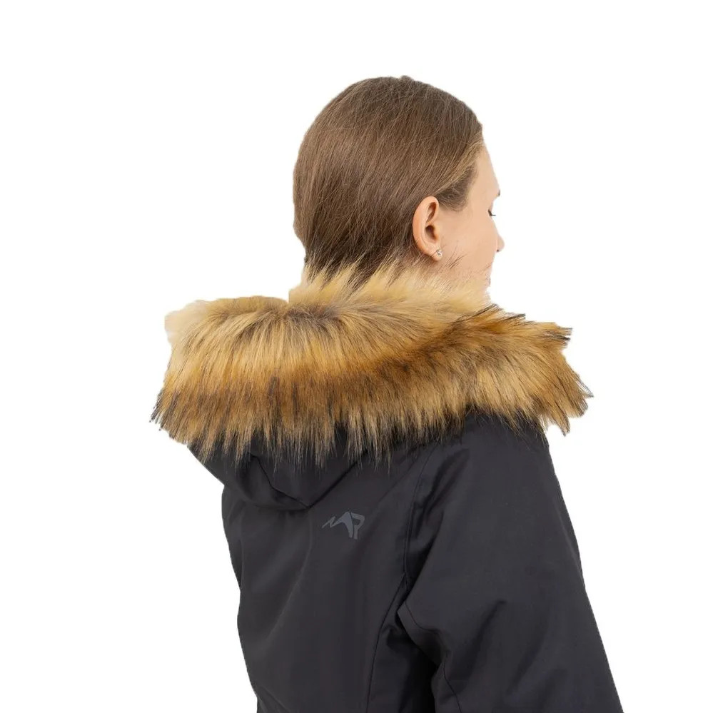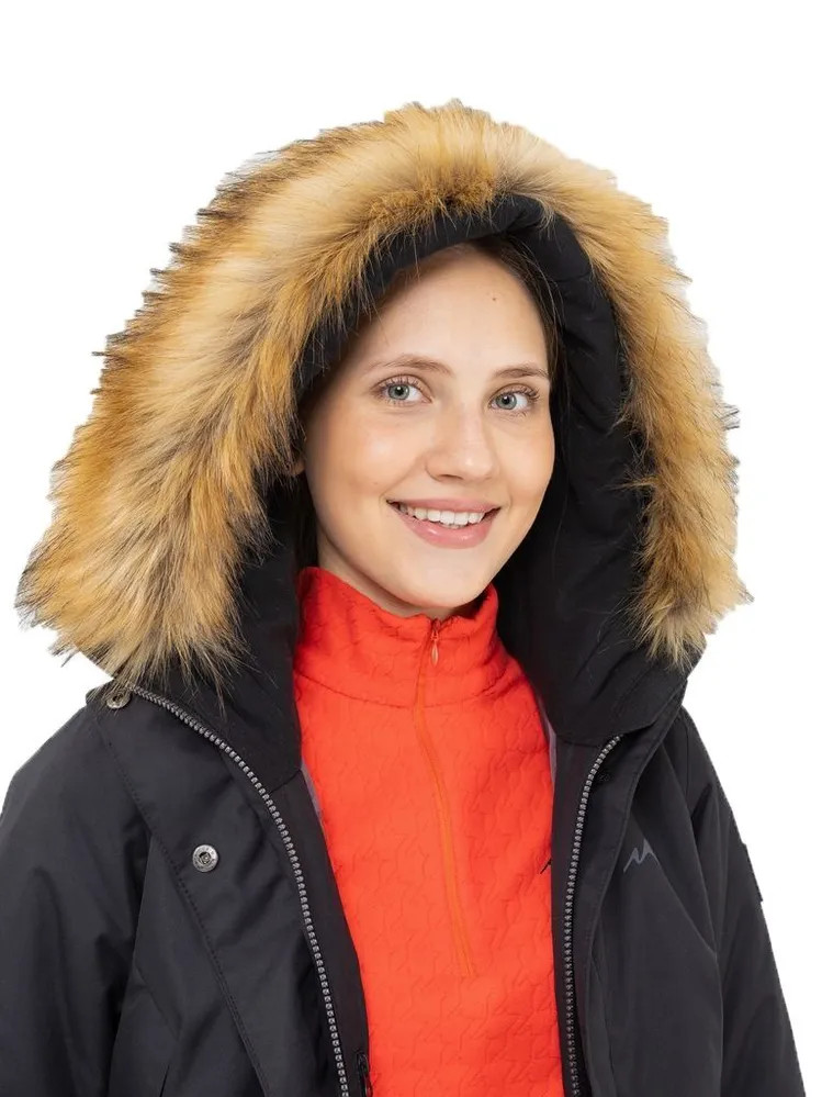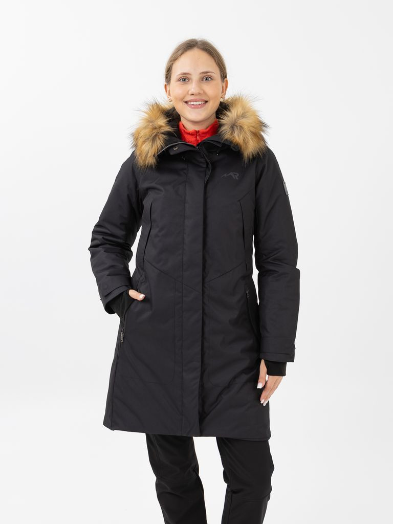 Функциональные особенности: Температурный режим – до -25 ˚С Конструктивные особенности: Покрой, посадка – изделие плуприлегающего силуэта, умеренного объема Длина изделия – до линии коленей Герметизация – частичная Водонепроницаемые молнии - да Капюшон – труба Утяжка капюшона - да Регулировка капюшона по высоте - да Воротник – стойка Ветрозащитная планка - да Застежка – на молнии под пластроном Регулируемые манжеты - да Рельефные швы – на полочке, на спинке Количество карманов - 5 Карман под планкой - да Светоотражающие элементы - да Ткань: курточная мембранная (100% ПЭ), 10000/10000, плотность 185 г/мкв. Утеплитель: тинсулейн термо, плотность 250 г/мкв. Подкладка: ткань подкладочная (100% ПЭ), трикотажное полотно (100% ПЭ). Опушка: искусственный мех.