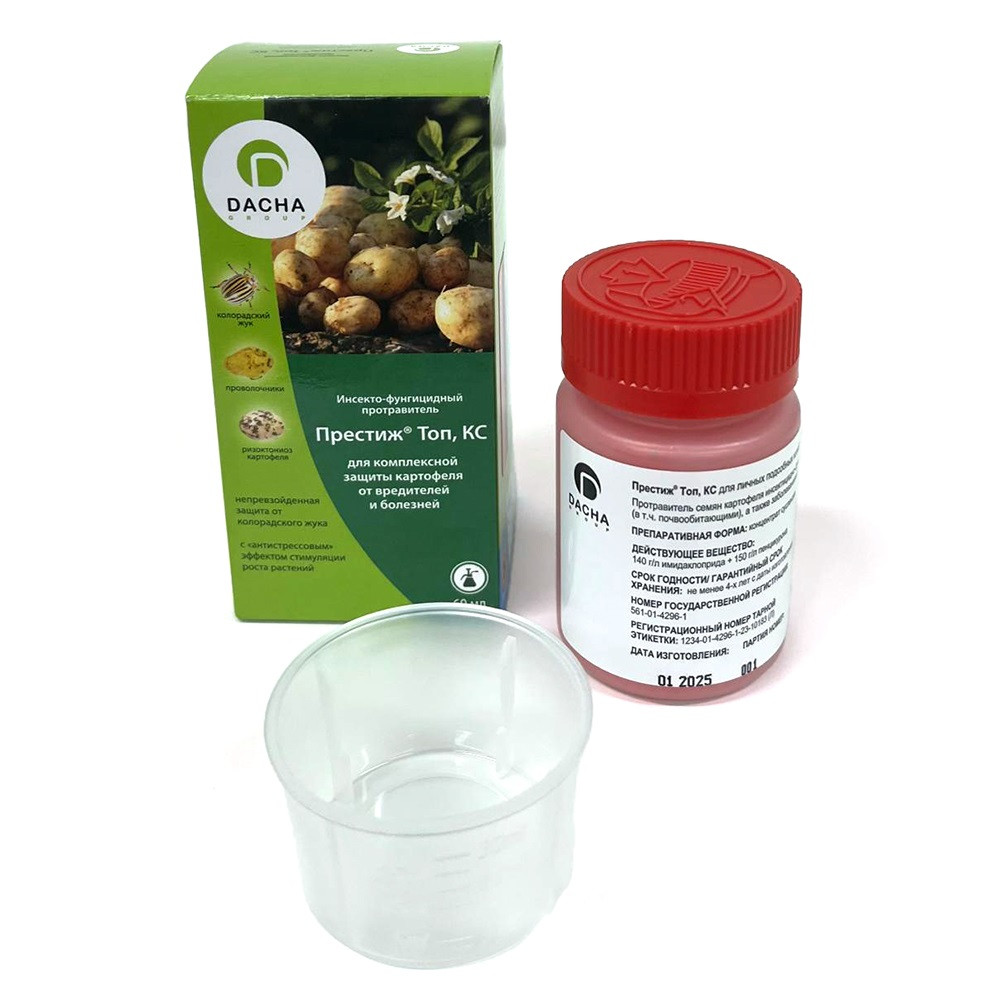 Действующее вещество: 140 г/л имидаклоприда + 150 г/л пенцикурона.Имидаклоприд — действующее вещество, блокирующее все процессы жизнедеятельности насекомых на клеточном уровне, пенцикурон - подавляет прорастание мицеллия в растительных тканях и защищает от различных болезней.Препаративная форма: концентрат эмульсии. Высокоэффективный препарат для борьбы с вредителями, поражающими, в основном, картофель. Это средство не только уничтожает насекомых, но и излечивает ряд болезней, а также оказывает сильное антистрессовое действие. Чаще всего Престиж используют для опрыскивания клубней картофеля перед высаживанием в почву. Период действия – на протяжении всей вегетации и вплоть до окончания цветения картофеля. Норма расхода: 70-100 мл препарата на 1л воды рассчитана для обработки 100 кг клубней картофеля.