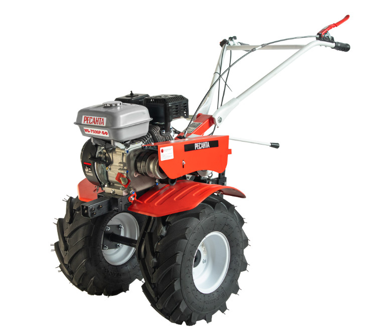 Сельскохозяйственная машина разработана специально для использования на приусадебных участках и в частных фермерских хозяйствах. Мотоблок позволяет качественно выполнить рыхление, боронование, выравнивание и другие операции по обработке почвы. Модель отличается большими колесами 19х7-8 с агрессивным протектором, которые не дадут увязнуть на любом типе грунта.Мотоблок позволяет регулировать ширину и глубину обработки почвы. Максимальная ширина обработки на стандартных фрезах: 100 см. Диаметр фрез: 30 см, глубина регулируется сошником. Закаленные фрезы позволяют культивировать все виды почв, включая целинные.Двигатель мощностью 7,5 л.с. работает от бензинового топлива не ниже АИ-92. Автоматический регулятор частоты вращения оптимизирует расход топлива и облегчает работу оператора. Датчик уровня масла защищает двигатель от поломки. Гарантия производителя на двигатель составляет 3 года.