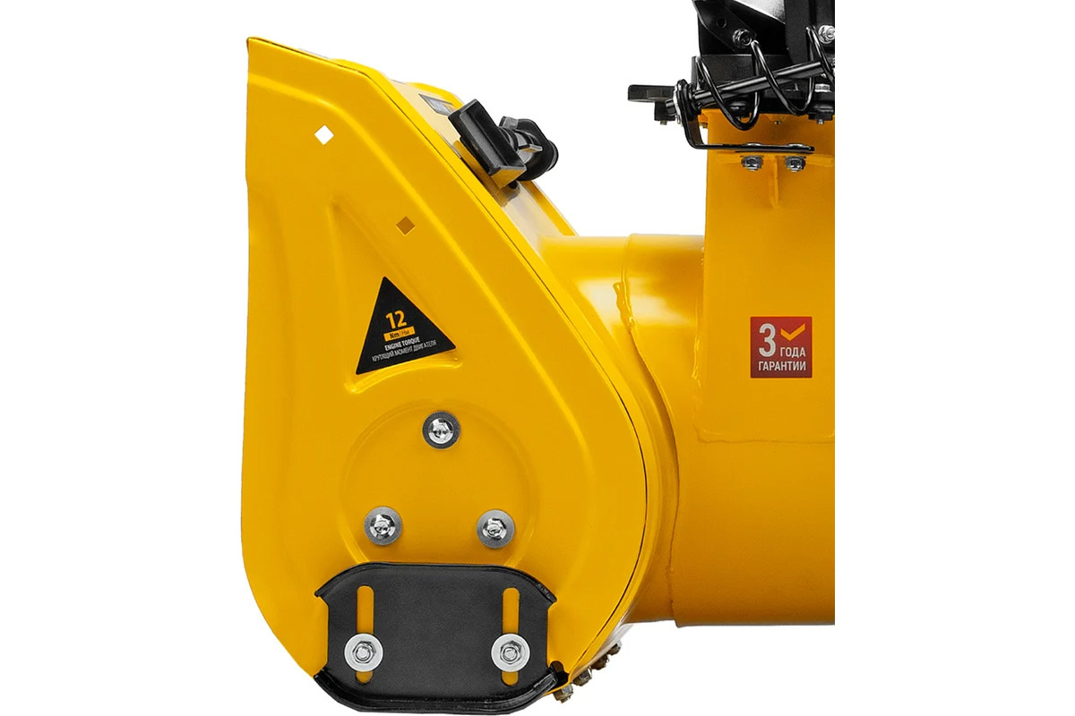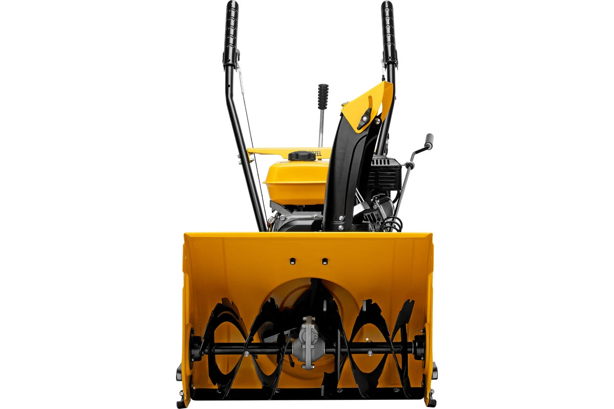 Снегоуборщик относится к самоходному типу с двухступенчатой системой забора снега.