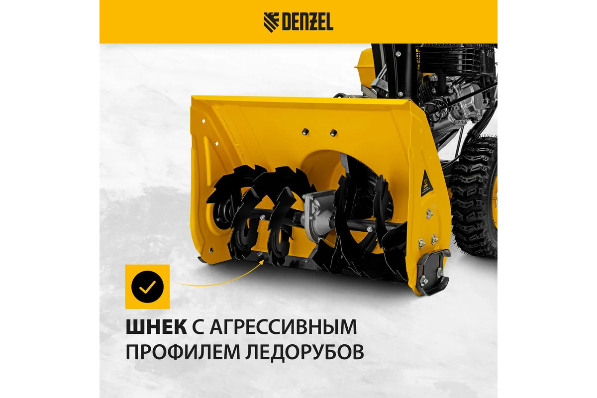 Бензиновая снегоуборочная машина Denzel SB 560 LP 97652 предназначена для расчистки дачных участков, придомовой территории, парковок, дорожек и других заснеженных территорий. Ресурсный двигатель объемом 212 куб.см с высоким крутящим моментом и кожух шнека шириной 560 мм обеспечивают эффективную уборку снега. Снегоуборщик относится к самоходному типу с двухступенчатой системой забора снега. Электростартер обеспечивает запуск двигателя при низких температурах. Яркая LED фара облегчает работу в темное время суток. Благодаря шинам с глубоким протектором исключается пробуксовка на обледенелой дороге.