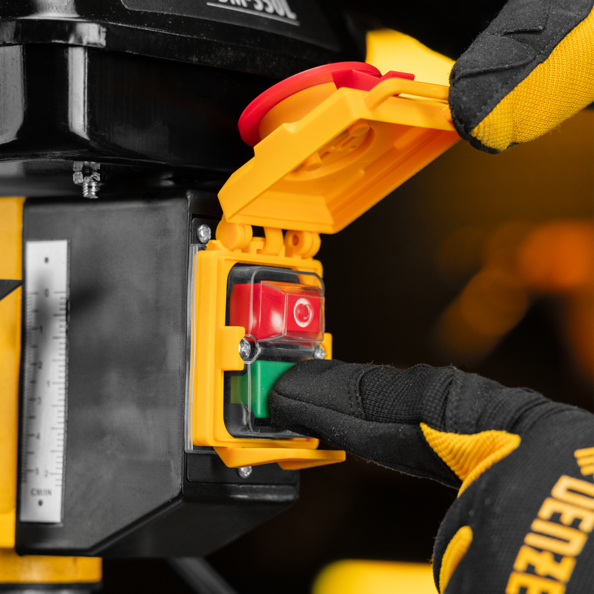 - Продуманная конструкция — надежный электромагнитный выключатель с кнопкой аварийной остановки позволяет мгновенно прекратить работу при необходимости.