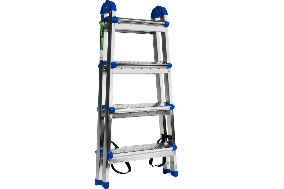 Стремянка двухсторонняя Сибртех 97984 со стальным профилем и 4 стальными ступенями помогает решать бытовые задачи на высоте, превышающей человеческий рост. Ее используют, чтобы доставать предметы с антресолей или шкафов, проводить уборку, менять лампочки, вешать полки или картины. Работать с электроинструментом на ней не рекомендуется. Стремянка с пластиковым складным механизмом повышенной стабильности и широким основанием очень устойчива на ровной поверхности. Площадка находится на высоте 88 см от опорной поверхности, рабочая высота стремянки составляет 288 см (при среднем росте пользователя 170 см).