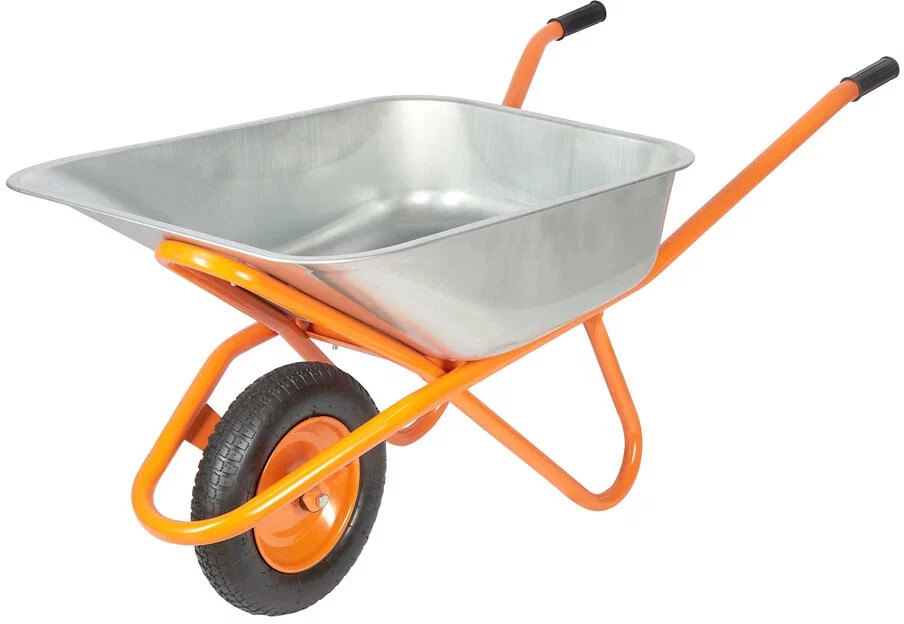 Тачка используется для перевозки песка, щебня, грунта и других сыпучих грузов. Поверхность устойчива к истиранию и коррозии.
