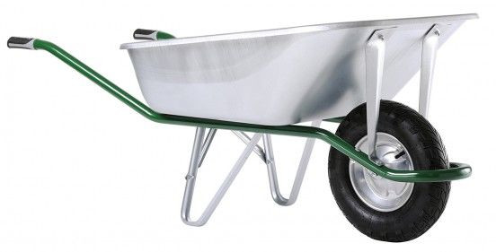 Одноколесная строительная тачка Haemmerlin CARGO EXELLIUM 160 MG GFR с большим объемом оцинкованного кузова станет прекрасным решением для использования в фермерских хозяйствах. Вместимость 160 л и грузоподъемность до 250 кг обеспечивают возможность перевозки крупных объемов тяжелых грузов. Специальное антикоррозийное покрытие повышает устойчивость кузова к неблагоприятным воздействиям. Сварная рама тачки Haemmerlin CARGO EXELLIUM 160 MG GFR выполнена из трубы Ø 32 мм, также формирующей отбойник перед колесом, и окрашена полиэстерной краской в зеленый цвет. В передней наклонной части кузова предусмотрено два упора, крепящихся к раме. Бескамерное пневматическое колесо с металлическим диском устанавливается на подшипниках.