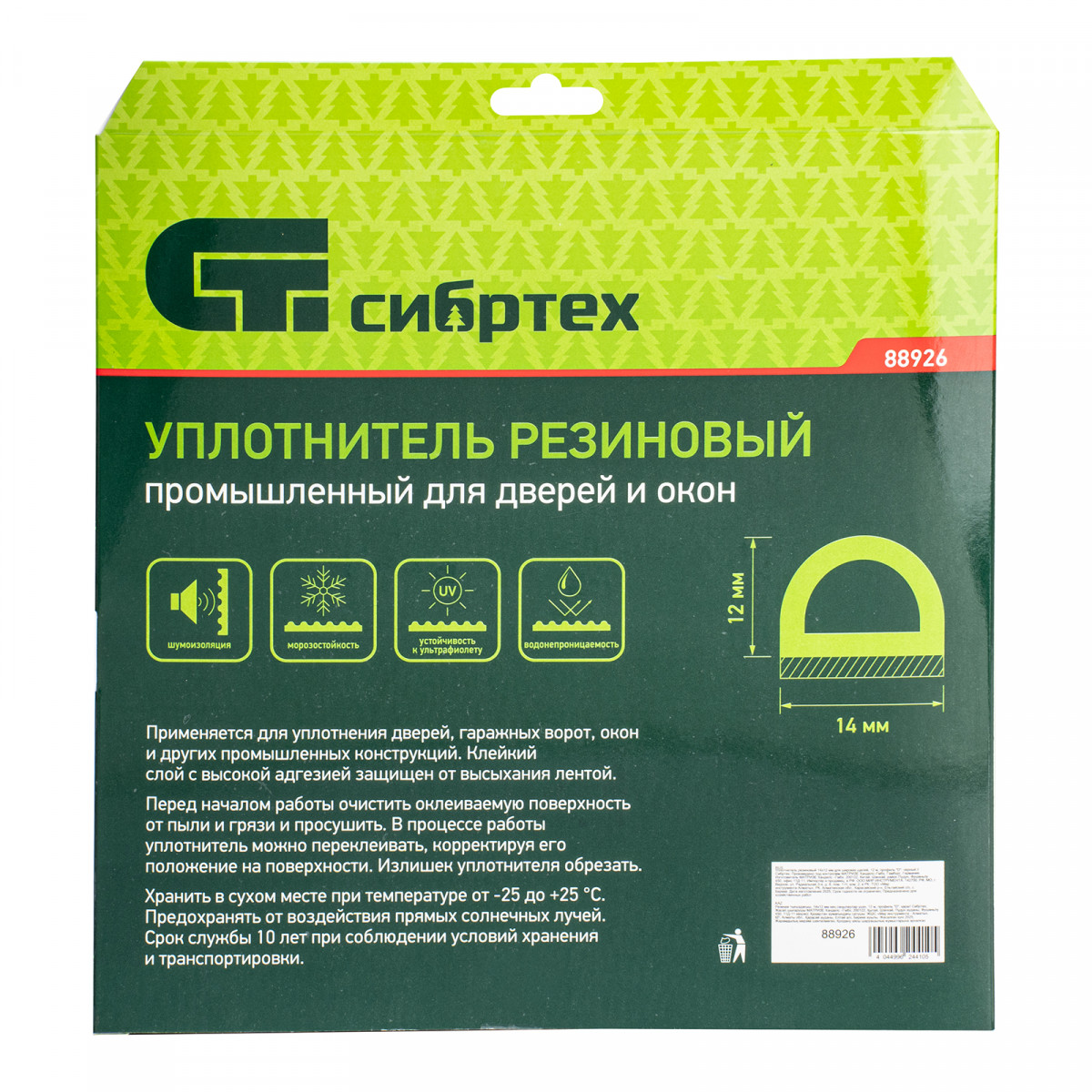 Уплотнитель резиновый 14х12 мм для широких щелей, 12 м, профиль "D", черный Сибртех