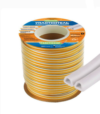 Уплотнитель самоклеящийся PRAKTISCHE HOME 9х8мм D-100 м белый ЦЕНА ЗА 1 п.м. в 1 слой