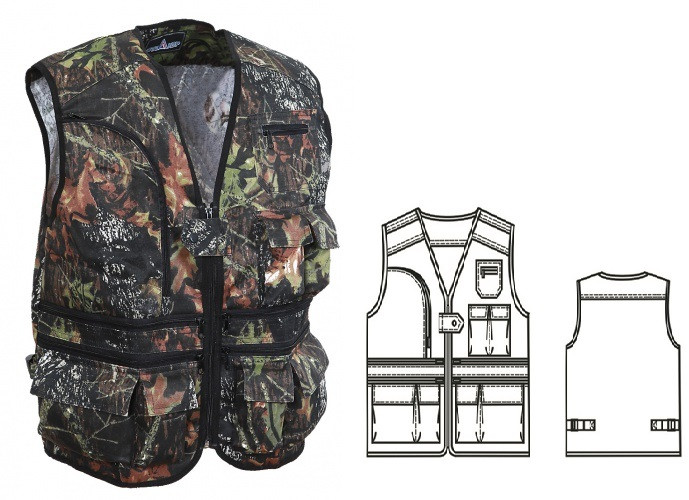 Множество удобных, функциональных и объемных накладных карманов с клапанами на липучках и молниях.